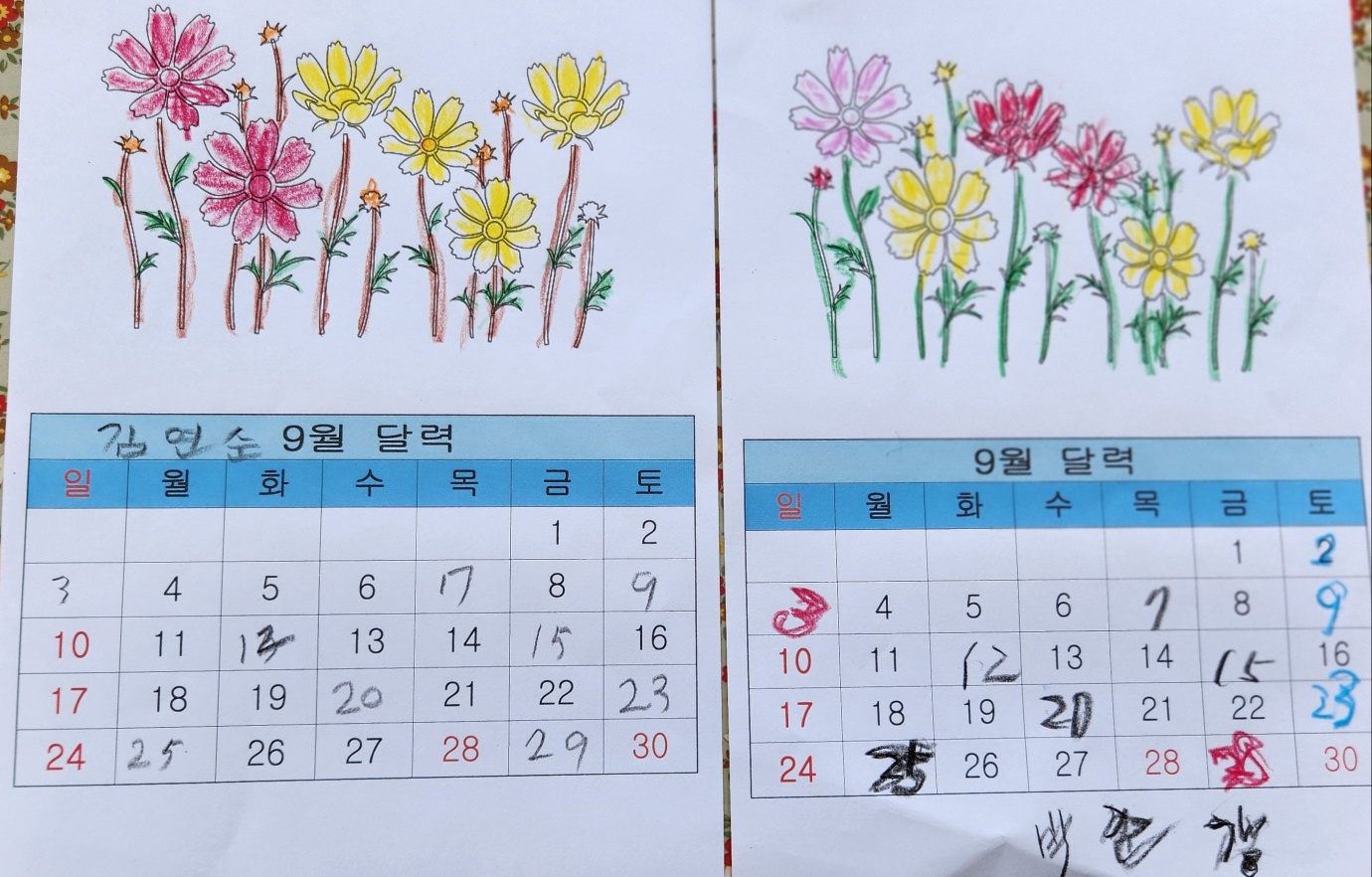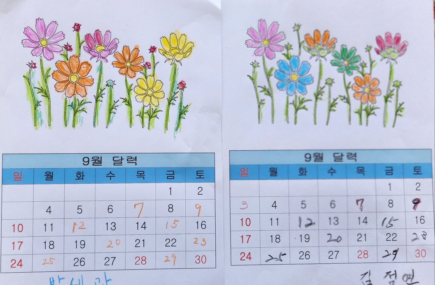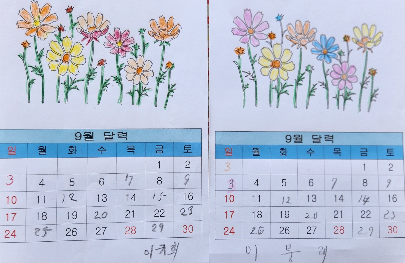 9월 달력만들기(인지A)